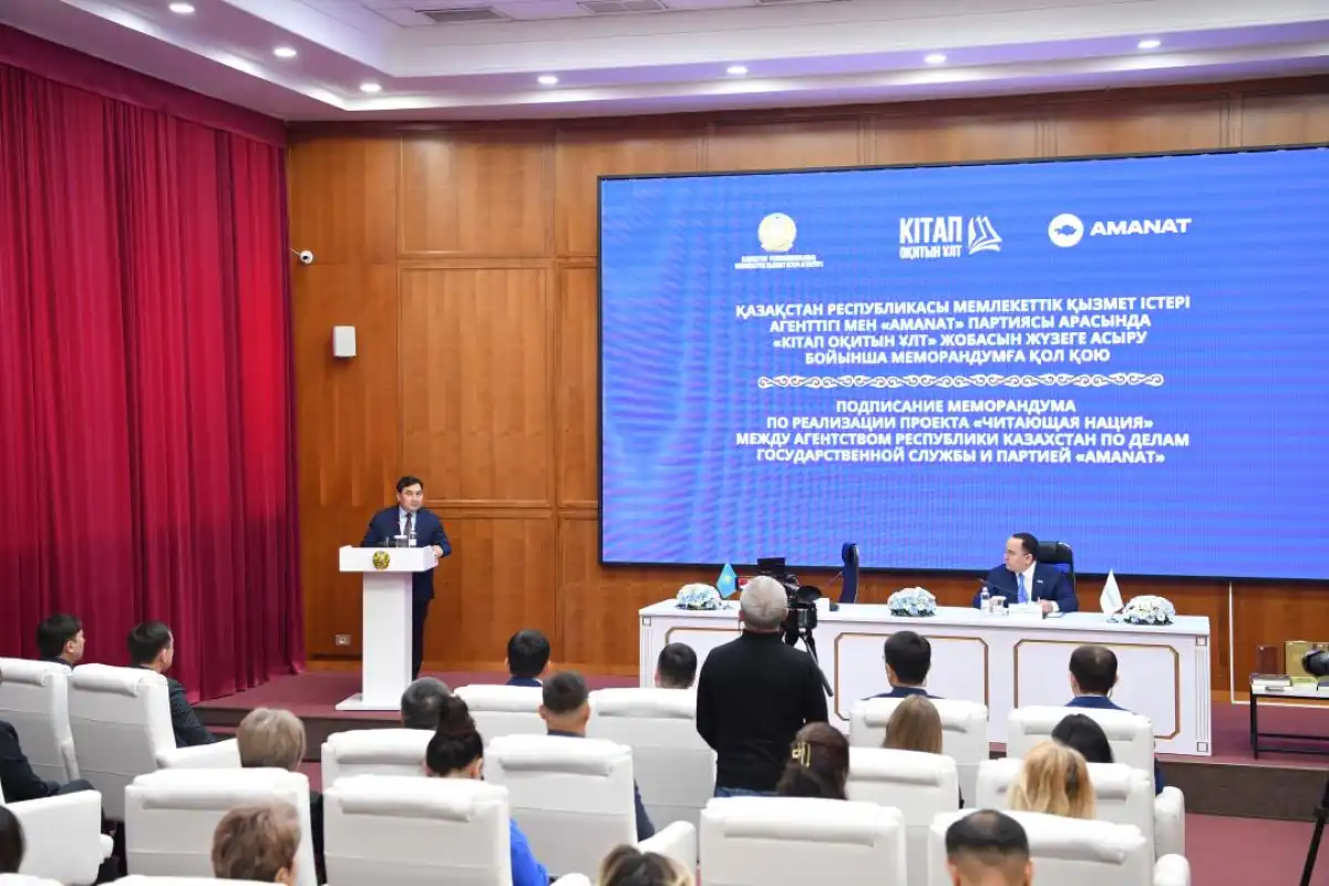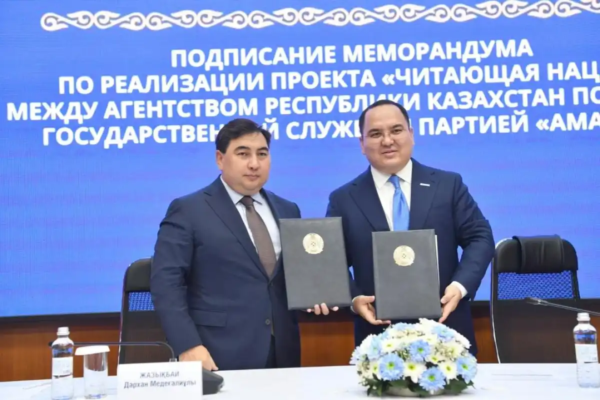 В рамках реализации концепции Главы государства «Читающая нация», озвученной на Национальном курултае, между Агентством по делам государственной службы Республики Казахстан и партией «AMANAT» подписан Меморандум о сотрудничестве, передает Elordainfo.kz со ссылкой на пресс-службу департамента.