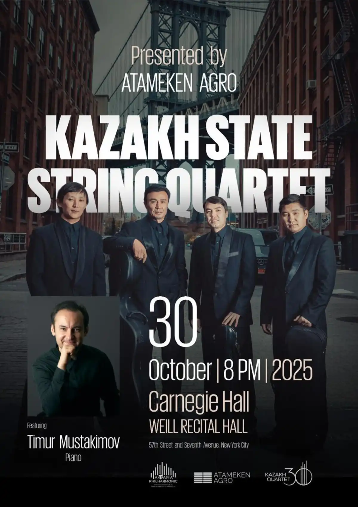 Кульминацией мирового турне станет концерт в Carnegie Hall (Weill Recital Hall) в Нью-Йорке, который состоится 30 октября. Это событие можно назвать сенсацией. Единицы казахстанских музыкантов имели честь выступать на легендарной сцене Большого Яблока. Выход Казахского государственного струнного квартета в Carnegie Hall - не просто признание, а знаковое событие, подтверждающее высокий статус казахстанской исполнительской школы в мировом музыкальном сообществе.