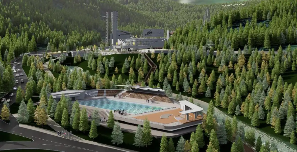 «Особое внимание уделено созданию современных спортивно-оздоровительных условий. В районе старого машинного зала появится открытый бассейн размером 25 на 15 метров, с подогревом воды. Для комфорта посетителей предусмотрены трибуна и здание обслуживания, включающее ресепшн, раздевалки и все необходимые удобства. Новый бассейн станет круглогодичным местом притяжения для горожан и туристов, предлагая уникальную возможность плавать на свежем воздухе в живописной атмосфере гор.