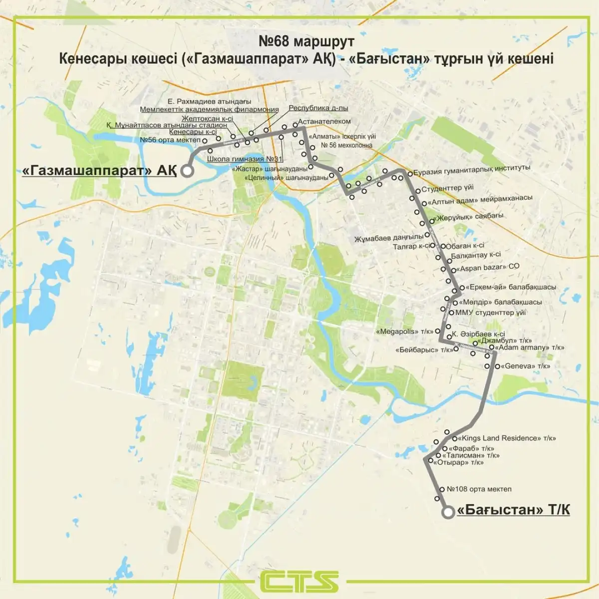 Маршрут №68 – АО «Газмашаппарат» – жилой комплекс «Багыстан»