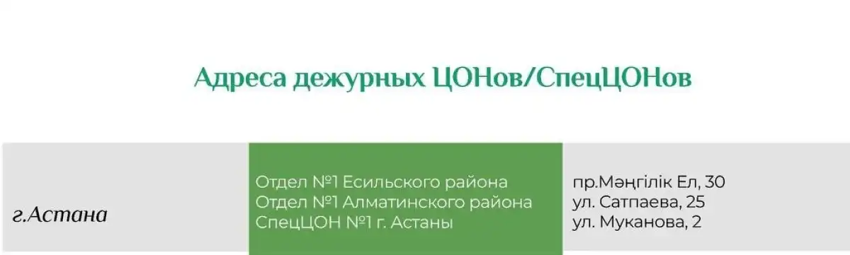 Дежурные спецЦОНы в Астане теперь работают по новым адресам