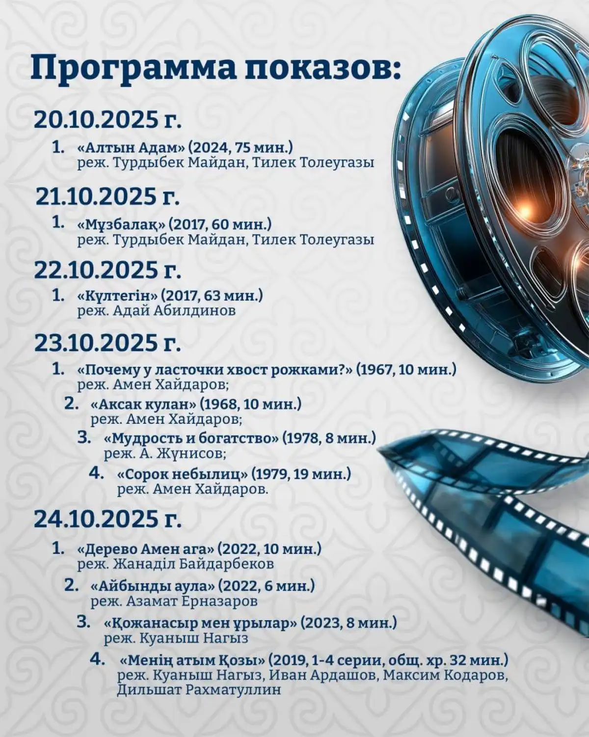 С 20 по 24 октября творческое объединение «Казаханимация» при киностудии «Казахфильм» имени Шакена Айманова приглашает на «Неделю национальных анимационных фильмов», передает Elordainfo.kz со ссылкой на Министерство культуры и информации РК.