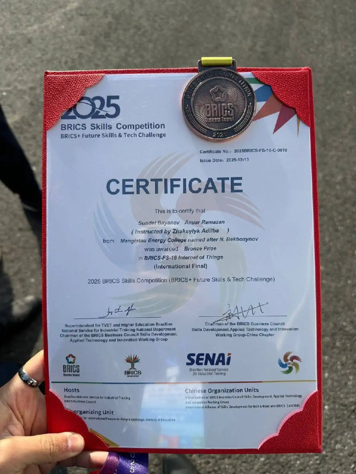 В городе Шаоян Китайской Народной Республики в рамках «2025 China Grand Final» прошёл международный чемпионат BRICS Skills Competition, по итогам которого казахстанская команда заняла призовое место, передает Elordainfo.kz со ссылкой на пресс-службу Министерства науки и высшего образования РК.