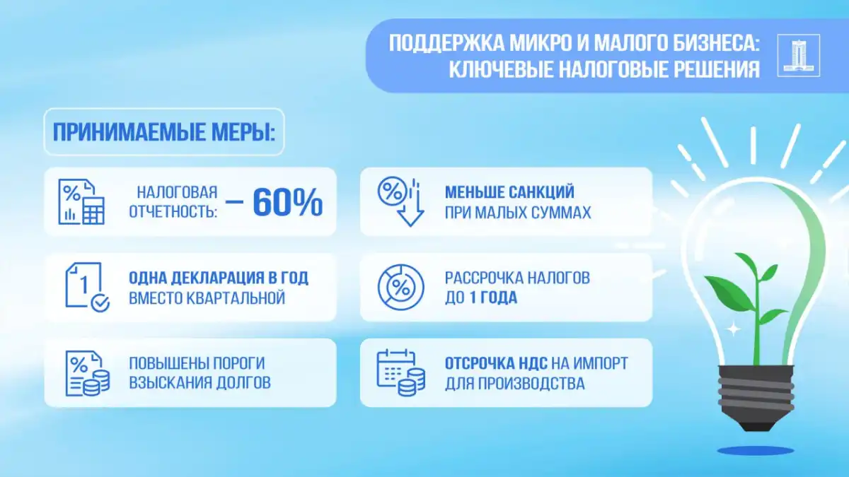 Теперь дополнительно с 1 января 2026 года для тех, у кого сумма обязательств не превышает 1 млн тенге, отменяются ежеквартальные расчеты текущих платежей по налогам на имущество, транспорт и землю. Предприниматель будет сдавать одну декларацию по итогам года и платить по итогам года.