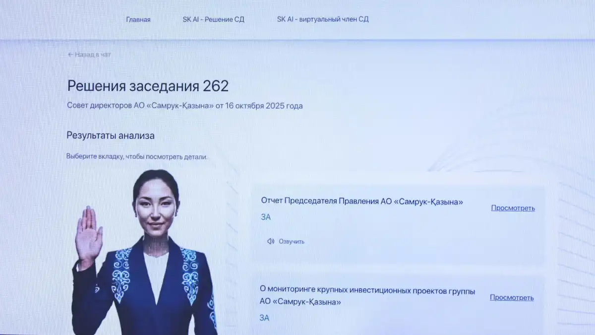 В заседании впервые принял участие независимый цифровой член СД на базе искусственного интеллекта с правом голоса SKAI (Samruk-Kazyna Artificial Intelligence). Данная нейросеть, созданная на базе казахстанской языковой модели Alem LLM, была ранее презентована Главе государства в рамках международного форума Digital Bridge 2025.
