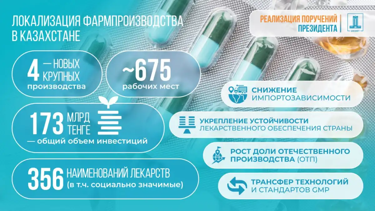 Отмечается, что строительство заводов и их ввод в эксплуатацию позволит существенно увеличить долю казахстанского производства лекарственных средств, снизить импортозависимость фармацевтического рынка, укрепить устойчивость лекарственного наполнения и обеспечить население доступными и качественными медикаментами отечественного производства. Это станет одним из важных элементов повышения лекарственной безопасности и устойчивости системы здравоохранения.