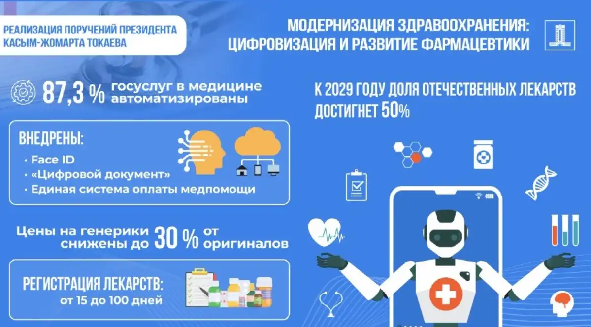 В рамках поручений Главы государства Касым-Жомарта Токаева, данных в Послании народу Казахстана «Справедливый Казахстан: закон и порядок, экономический рост, общественный оптимизм», Правительство в лице Министерства здравоохранения продолжает работу по повышению качестве медицинской помощи, развитию инфраструктуры, укреплению кадрового потенциала и цифровизации системы здравоохранения.