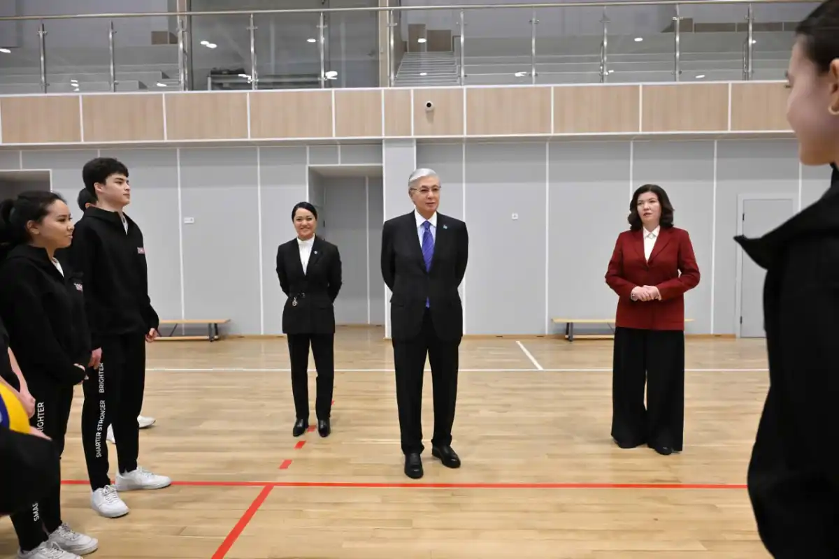 Касым-Жомарту Токаеву сообщили, что школа построена в рамках государственной поддержки бизнеса: 40% средств привлечены через кредитование фонда «Даму».