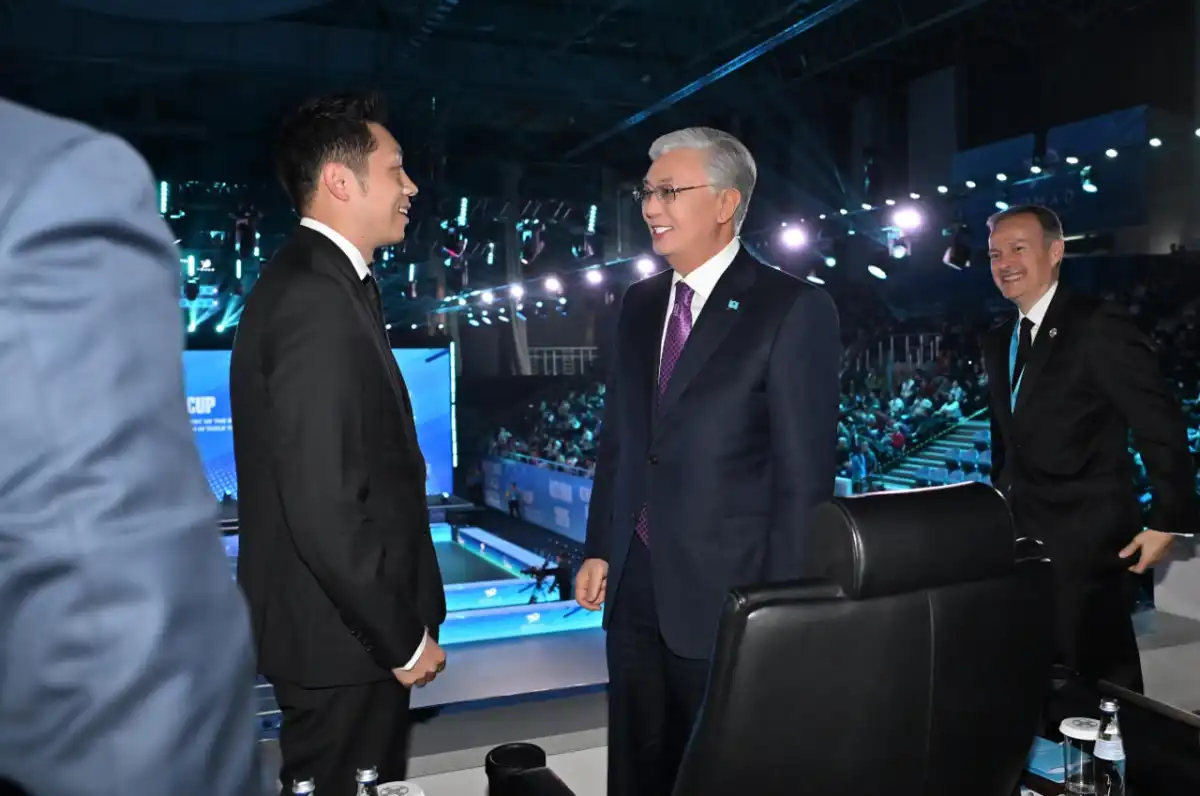 Токаев посетил шоу-матч с участием мировых звезд настольного тенниса