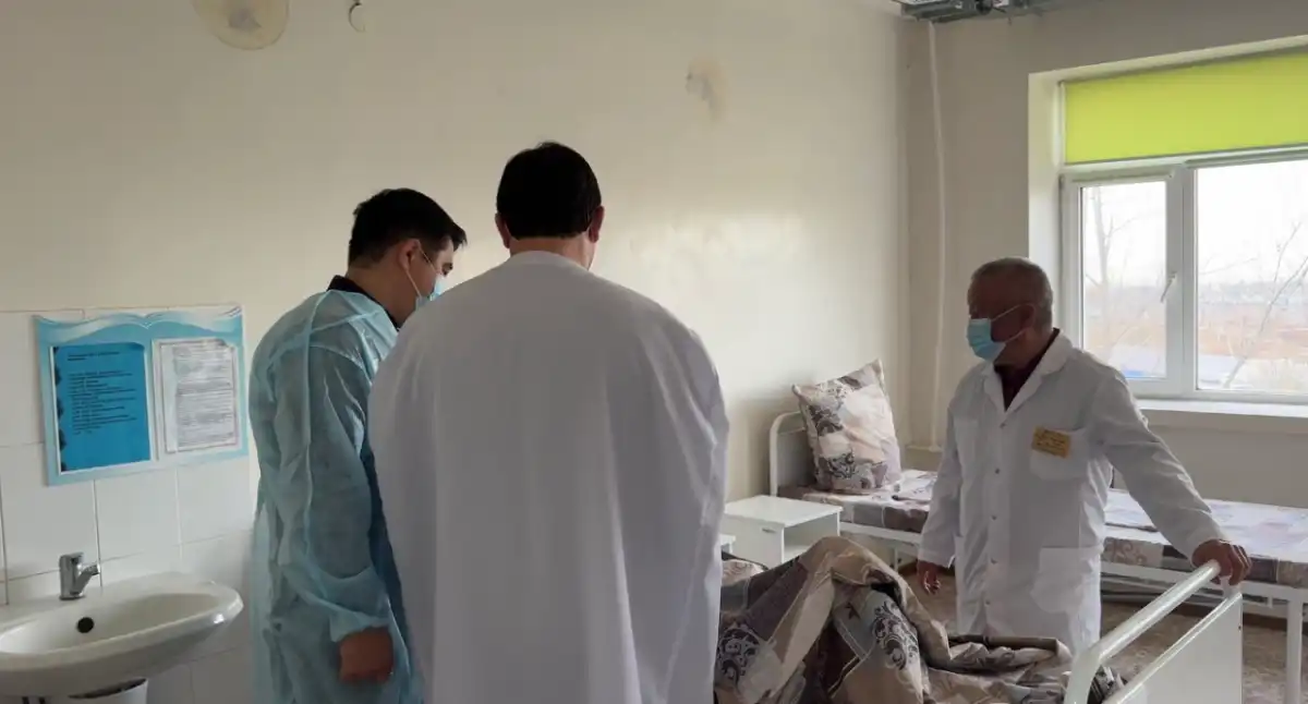 Аким побеседовал с одним из пациентов и пожелал ему и другим скорейшего выздоровления.