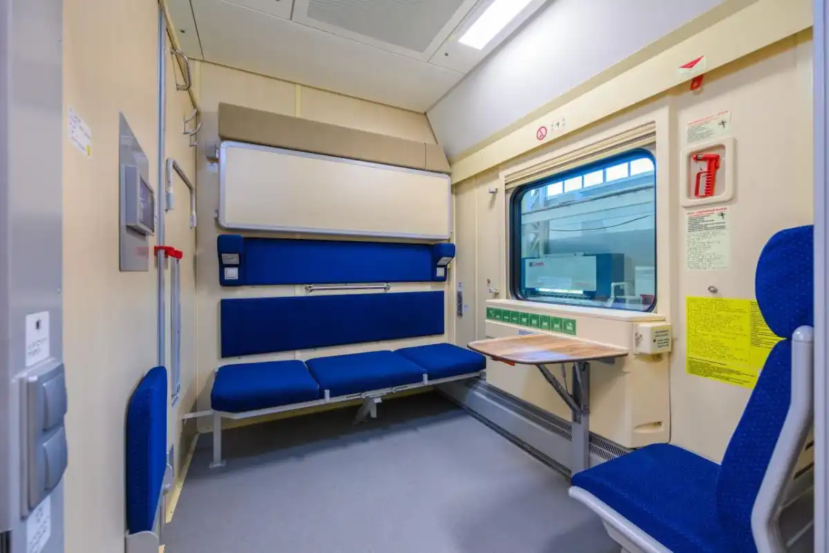 Вагоны изготовлены с учётом современных мировых требований к дизайну, безопасности, надежности и комфорту. В купе оборудованы эргономичные спальные места, индивидуальные светодиодные светильники, USB-порты и сетевые розетки. Для пассажиров с ограниченными возможностями предусмотрены специальные купе, места для колясок и кнопка вызова проводника. Срок службы вагонов – до 40 лет», – поделился нацперевозчик.