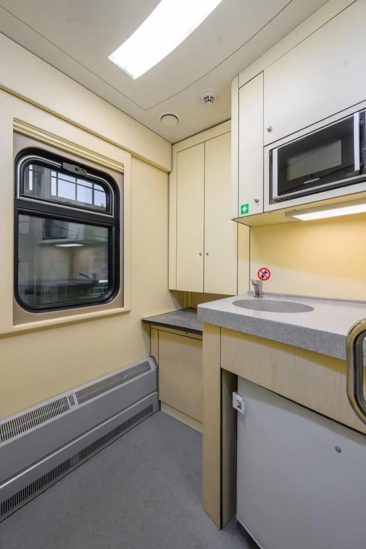 Внутренние покрытия вагонов выполнены из экологичных гипоаллергенных материалов. Система обеззараживания воздуха снижает риск инфекций.