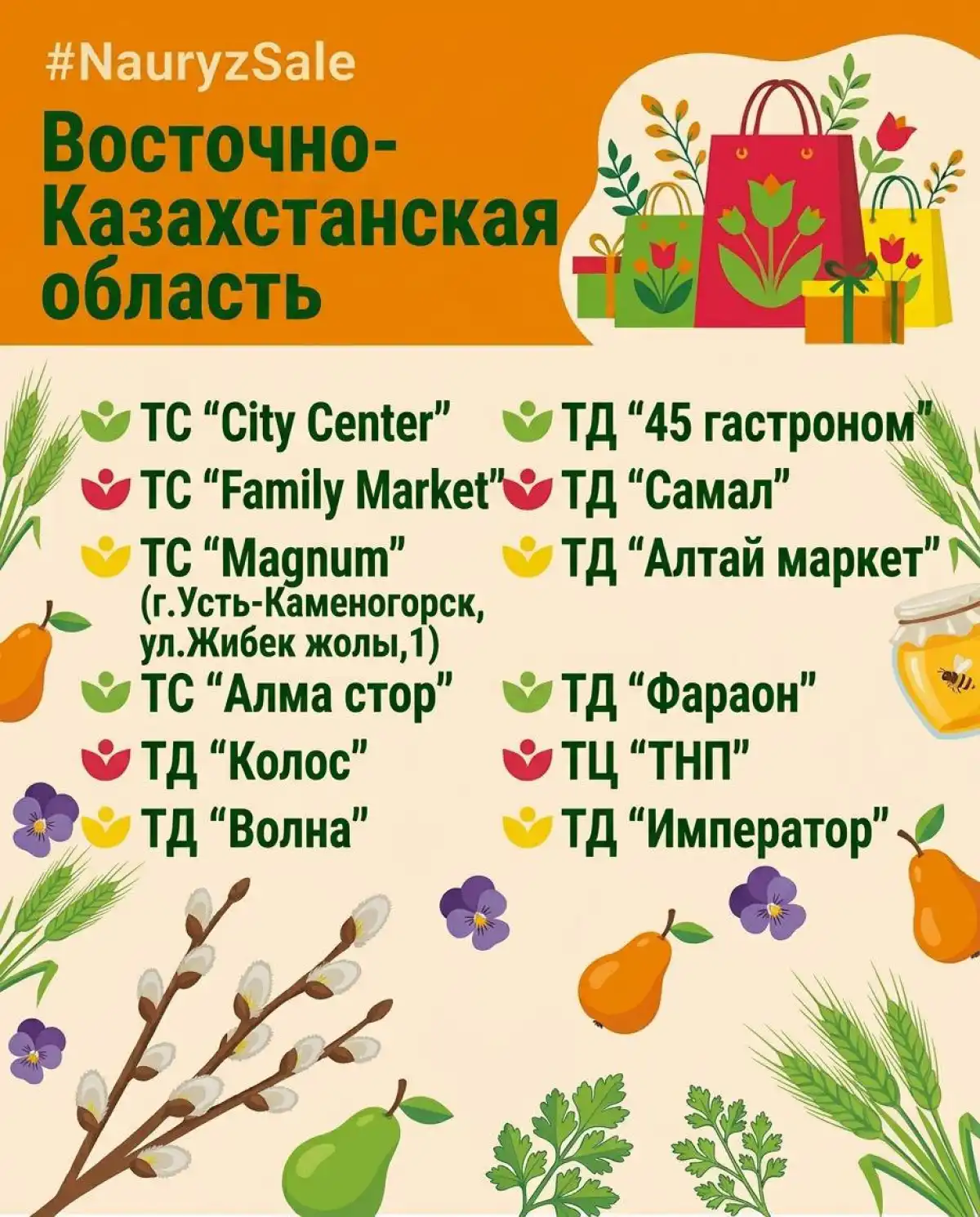 «В период акции казахстанцам предложат праздничные скидки на продовольственные и непродовольственные товары от 10 до 70% от группы товаров. Акционные позиции будут выделены в торговых залах специальной праздничной навигацией и фирменным оформлением Nauryz, тематическими ценниками, брендированными указателями, перетяжками и другими POS-материалами, позволяющими легко ориентироваться в ассортименте и быстро находить товары со сниженной ценой», – подсказали в МТИ.