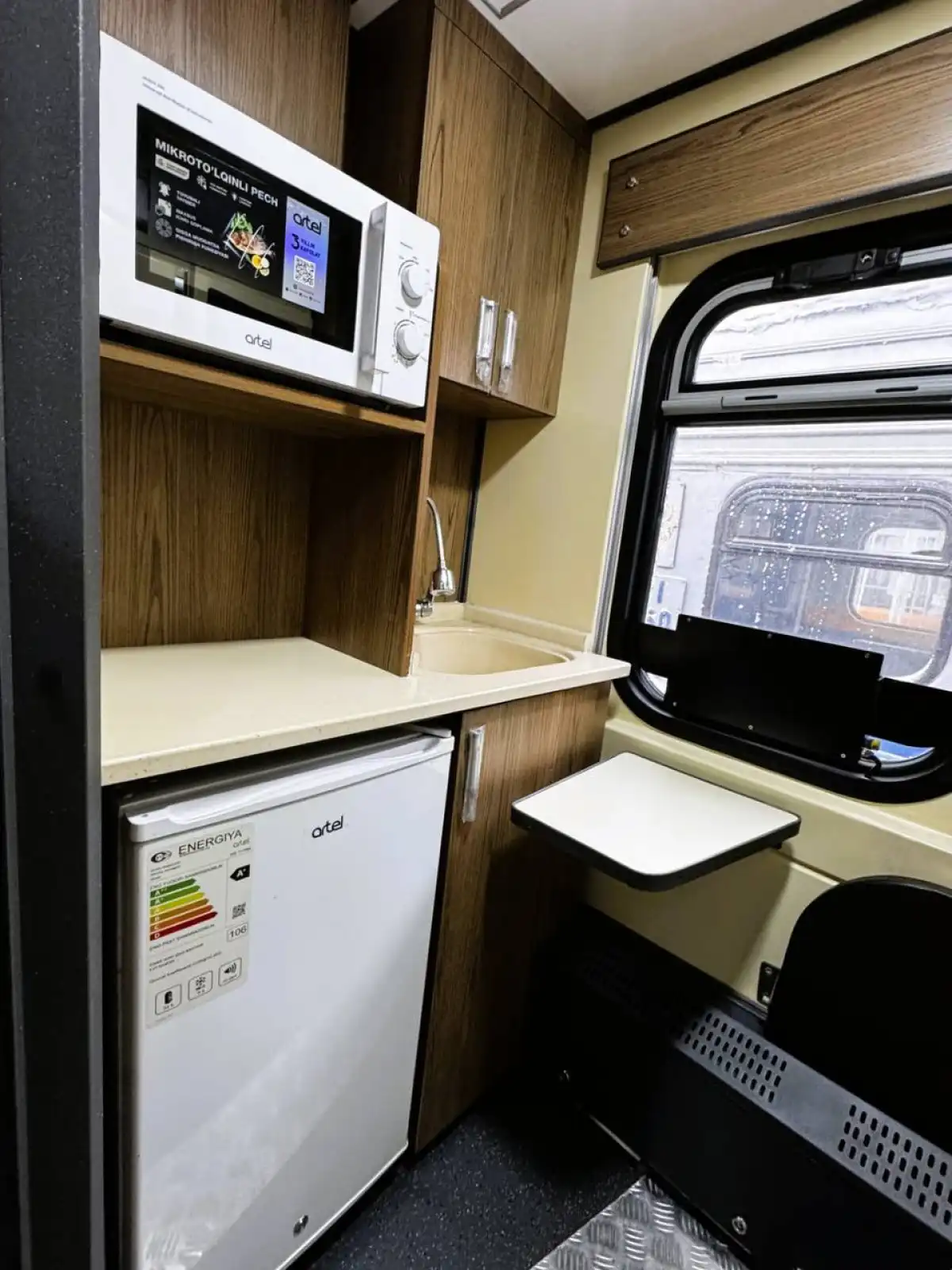 «В вагоне предусмотрены мягкие эргономичные сиденья, система кондиционирования воздуха, видеонаблюдение, экологически чистый биотуалетный комплекс, холодильник, микроволновая печь, разъёмы USB и Type-C для зарядки мобильных устройств и ноутбуков», – уточнили в ведомстве.