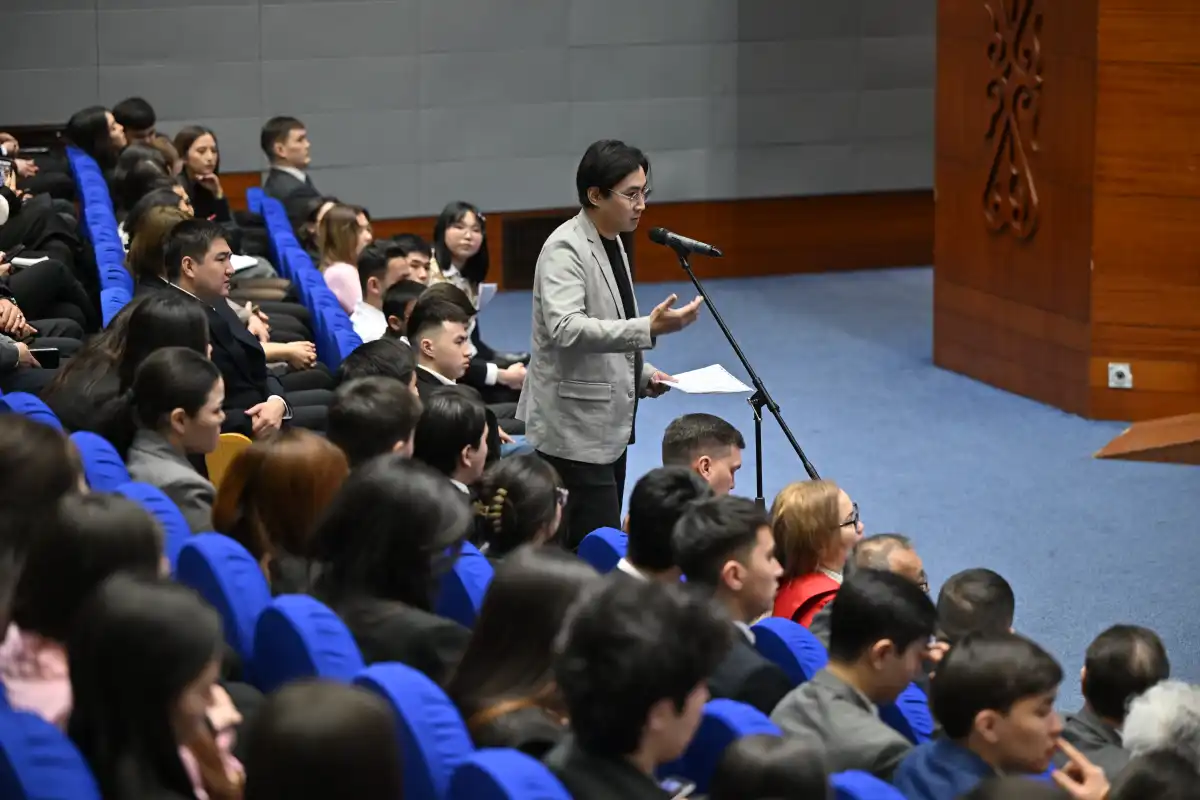 «Ключевым приоритетом обновленного Основного закона выступает человек, защита его прав, свобод и законных интересов. Конституционная реформа формирует долгосрочный фундамент для процветания будущих поколений, создавая прочную основу для раскрытия потенциала молодежи. В этих условиях на первый план выходит гражданская ответственность молодежи: важно активно участвовать в строительстве Справедливого Казахстана, включаться в процесс модернизации, развивая культуру диалога и созидания. Ориентиром на этом пути служит концепция Президента страны Касым-Жомарта Кемелевича Токаева «Адал Азамат», которая, опираясь на учение Абая «Толық адам», определяет трудолюбие, порядочность, профессионализм, непрерывное обучение и патриотизм в качестве важнейших ценностей для каждого человека», – акцентировал он, обращаясь к студентам.