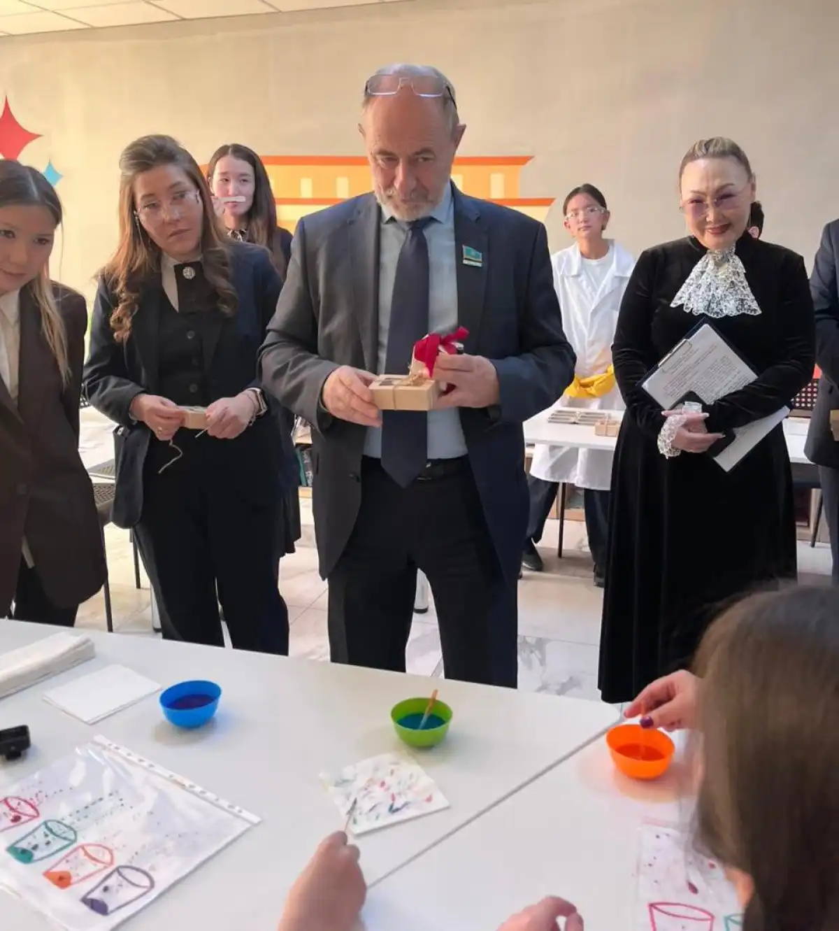Гости также посетили мастер-классы учеников. Учащиеся 11 классов Балғабай Әлңұр, Асылхан Нурай – представители Школы молодых психологов продемонстрировали арт и водную терапию для детей с ООП, раскрывающую влияние воды и цвета на эмоциональное состояние и развитие эмоционального интеллекта. Ученики 7 классов Джардемов Алес, Шариязданова Ясмин провели мастер-класс по изготовлению экологичного мыла из природных материалов, которое быстро смывается, экономит воду и не вызывает аллергических реакций.  Также был презентован международный исследовательский проект, реализуемый школой совместно с Washington Academy в рамках STEAM-подхода, направленный на изучение свойств воды и развитие проектной деятельности учащихся. Обучающиеся 8-9 классов Отешева Жулдыз, Жұмаділда Азиза, Темирова Айсулу и Кожахметов Жанибек продемонстрировали технологию изготовления парфюма из  экологически чистых природных материалов.