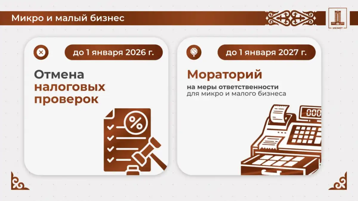 С учетом поручения, озвученного Главой государства на заседании Национального курултая, обеспечивается мягкое внедрение нового Налогового кодекса и учет конструктивных предложений бизнеса. Ранее было принято решение об отмене всех налоговых проверок за периоды до 1 января 2026 года. Дополнительно не будут применяться меры ответственности к микро- и малому бизнесу за нарушения, допущенные в текущем году.