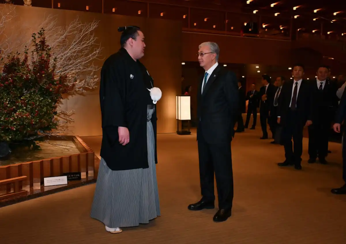 Токаев встретился в Токио с профессиональным борцом сумо Ерсином Балтагулом